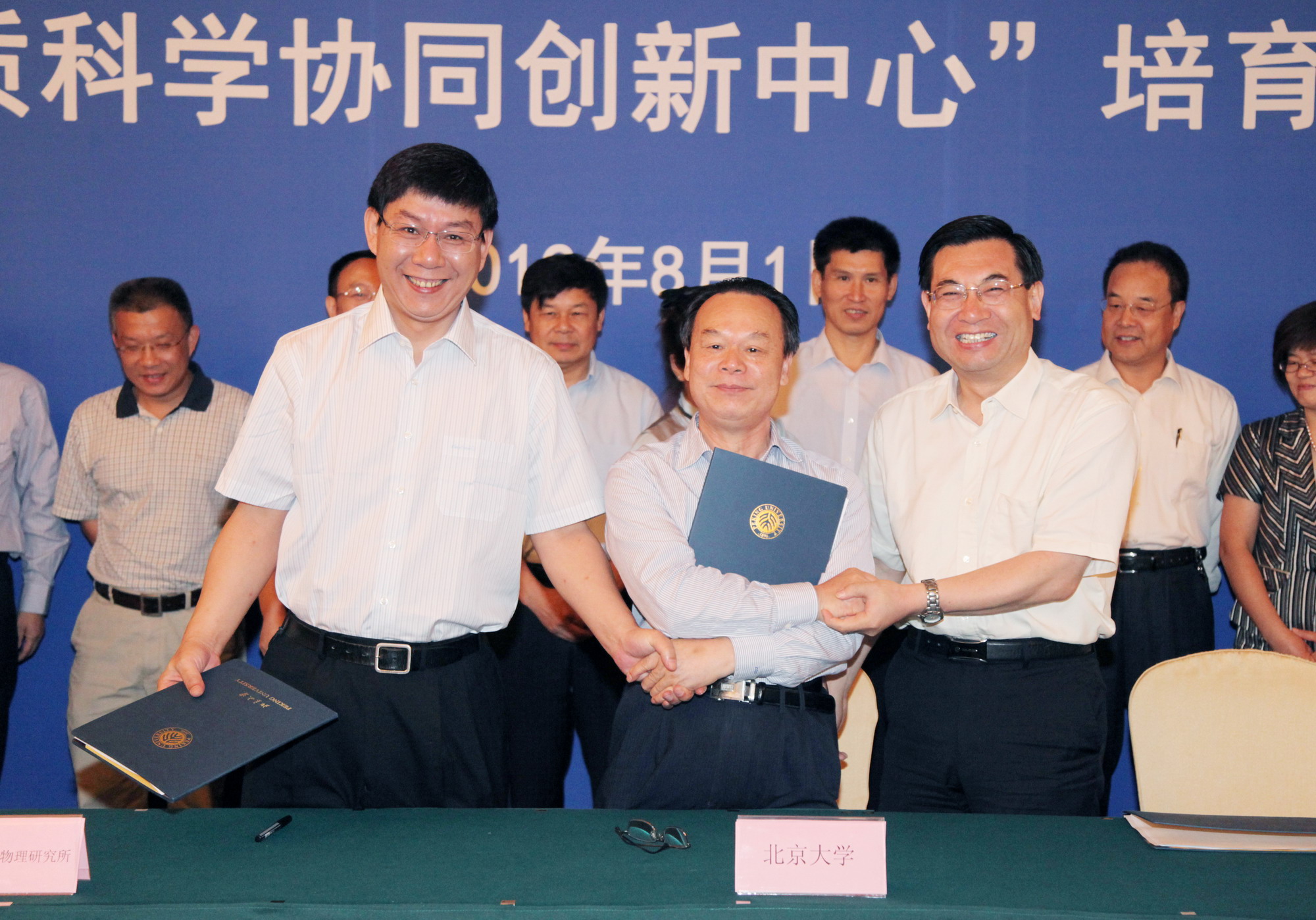 为落实中心实施方案,两校一所在启动仪式上郑重签署了《关于组织机构与管理运行机制的协议》、《关于岗位设置、人员聘任和人事管理的协议》、《关于研究人员招聘程序的协议》、《关于人才协同培养的协议》、《关于创新任务协同实施的协议》、《关于资源整合与成果共享的协议》、《关于“综合极端条件实验装置”的合作协议》以及《关于培育经费的协议》八项组建协议。