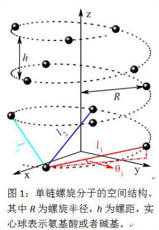 最近,孙庆丰教授和郭爱敏博士在分子自旋电子学领域又取得了重要进展。他们考虑将单螺旋分子接在两个非磁性电极之间,提出一个模型哈密顿量(包括长程跃迁项)研究了该系统的自旋输运性质。他们发现alpha-型单螺旋蛋白质是很好的电子自旋过滤器,电子自旋极化率达到36.2%,而单螺旋DNA不能有效地过滤电子自旋。这项研究成果解释了美国科学院院刊PNAS上的实验结果[PNAS 110, 14872 (2013)]以及Science上的实验结果[Science 331, 894 (2011)]。他们的研究成果表明除了双螺旋DNA分子外,有长程跃迁的单链螺旋分子也可以成为电子自旋过滤器。相比于最近邻跃迁,当长程跃迁比较明显时,单链螺旋分子能辨别电子自旋;当长程跃迁非常弱时,单链螺旋分子不能有效地过滤电子自旋。这项工作阐明了单链螺旋分子能够成为电子自旋过滤器的物理机制,能激起人们从实验和理论两个方面去研究各种螺旋有机分子的自旋和电荷输运性质,为将来设计螺旋分子自旋器件奠定了理论基础。