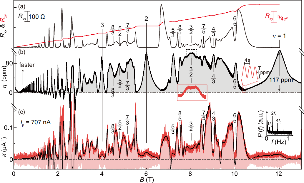 。100 nA电流在流过尺寸约为1 mm的样品时会导致0.1 ppm左右声波声速的增加。这一结果表明电子系统在承载电流时变得更加的不可压缩。这一发现对传统理论模型提出了挑战,填补了对于载流子输运机制方面的认识空白,有望推动相关研究的进一步发展。