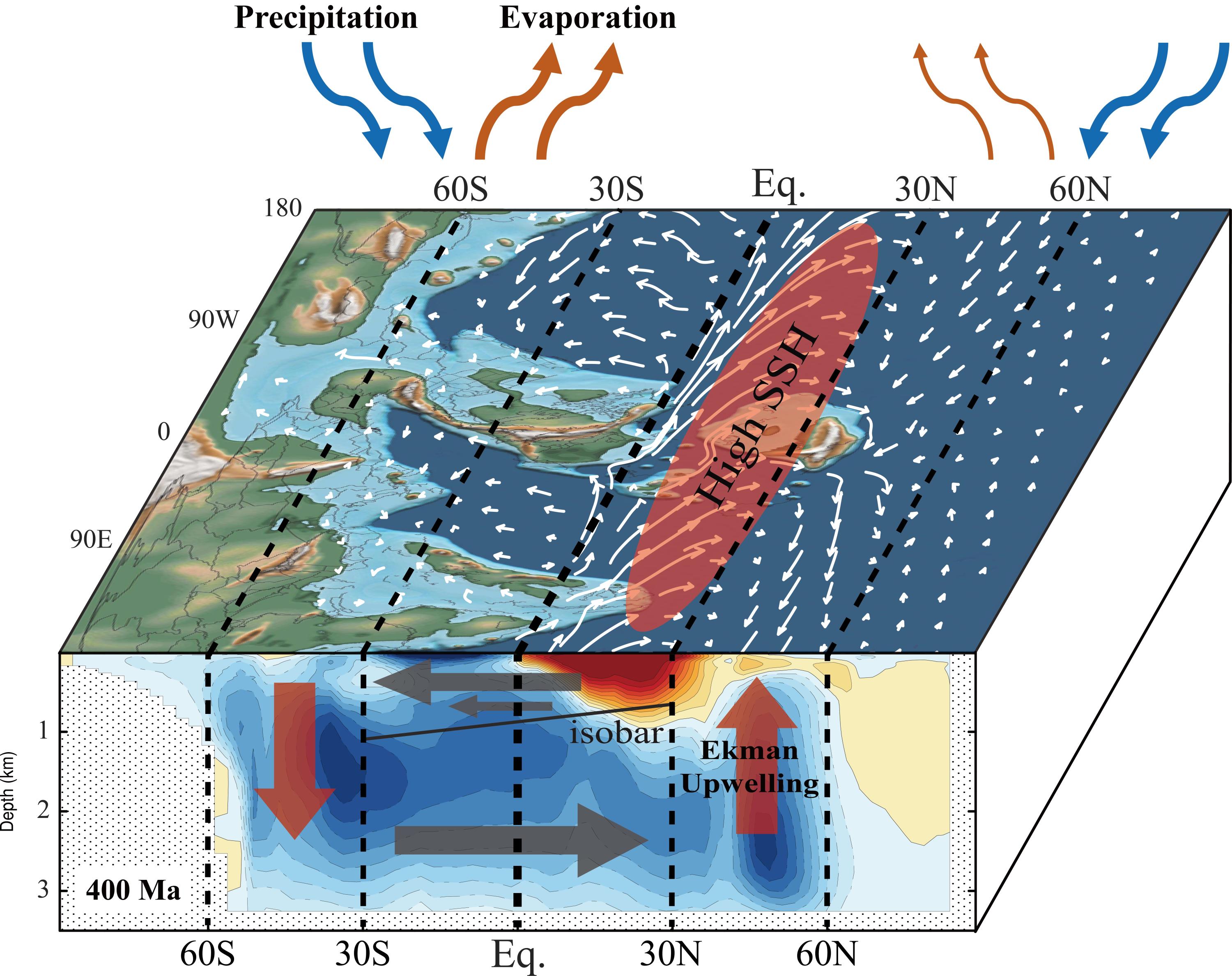 该项研究为我们理解现代大洋环流提供了重要的启示。早期关于AMOC的研究认为,北大西洋高盐度海水下沉是AMOC的驱动力。近期研究表明,南大洋西风驱动的埃克曼上翻也是AMOC的重要驱动力。因此,这里的古生代研究进一步表明了风应力是驱动大洋翻转流的重要因素。该研究还发现,海表面高度差也是驱动大洋环流的重要因素,这一发现是过去的研究中未曾注意到的。