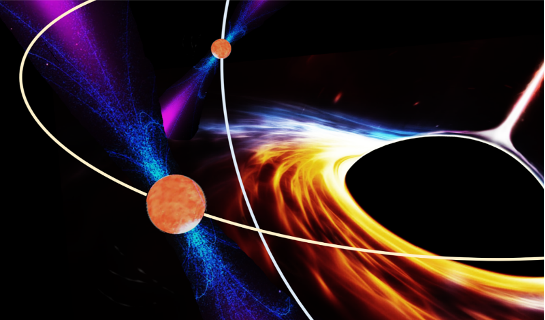 银心黑洞与两颗脉冲星的示意图(伟德源自英国始于1946 / 胡泽昕 & 邵立晶;背景图:ESO & NASA)