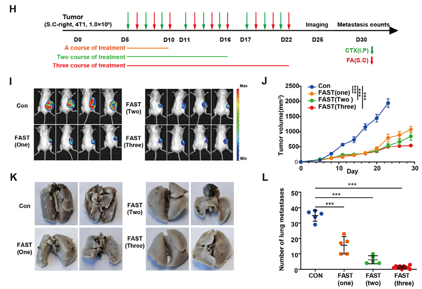 图2. FAST疫苗接种显著抑制了肿瘤的生长和转移