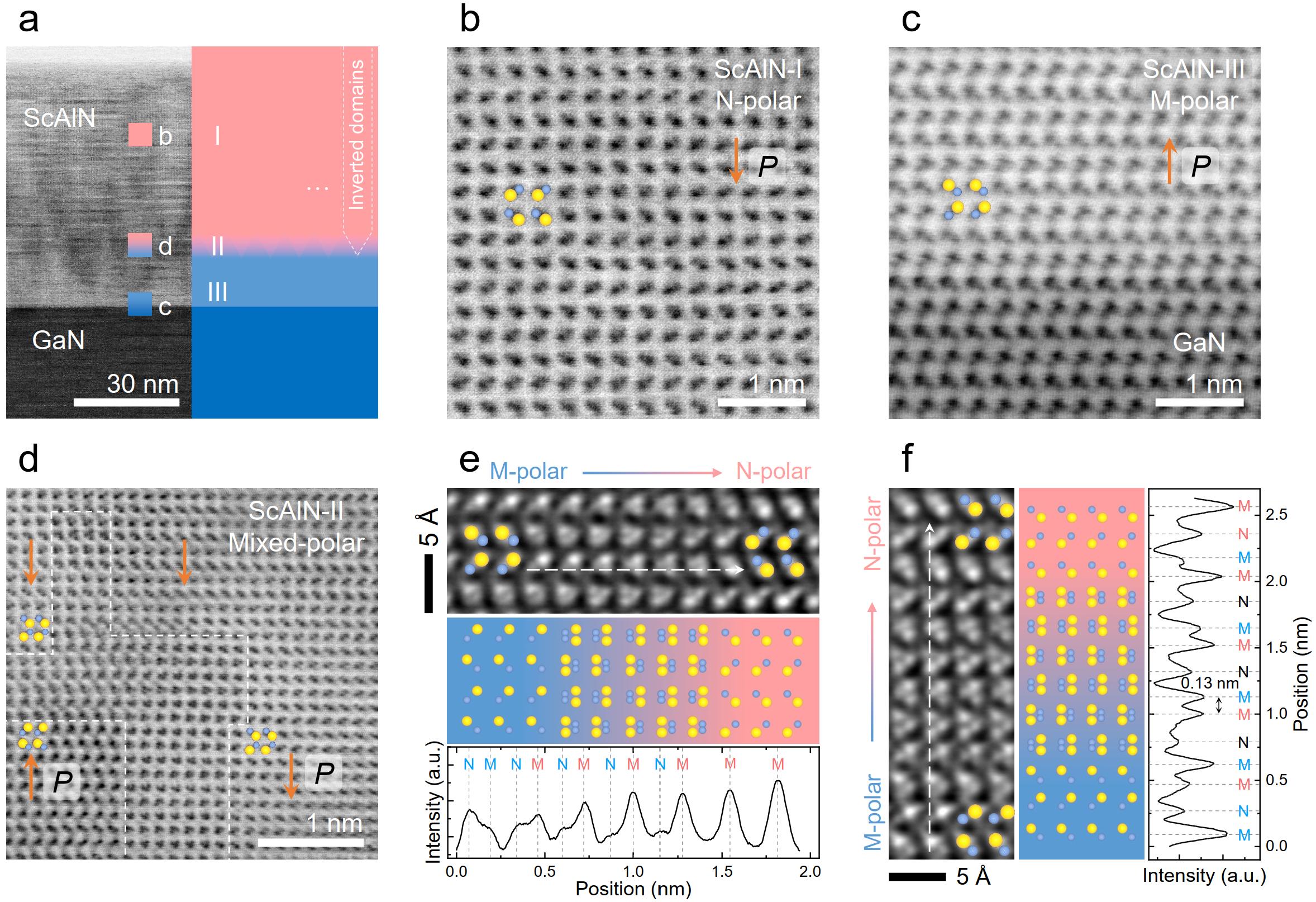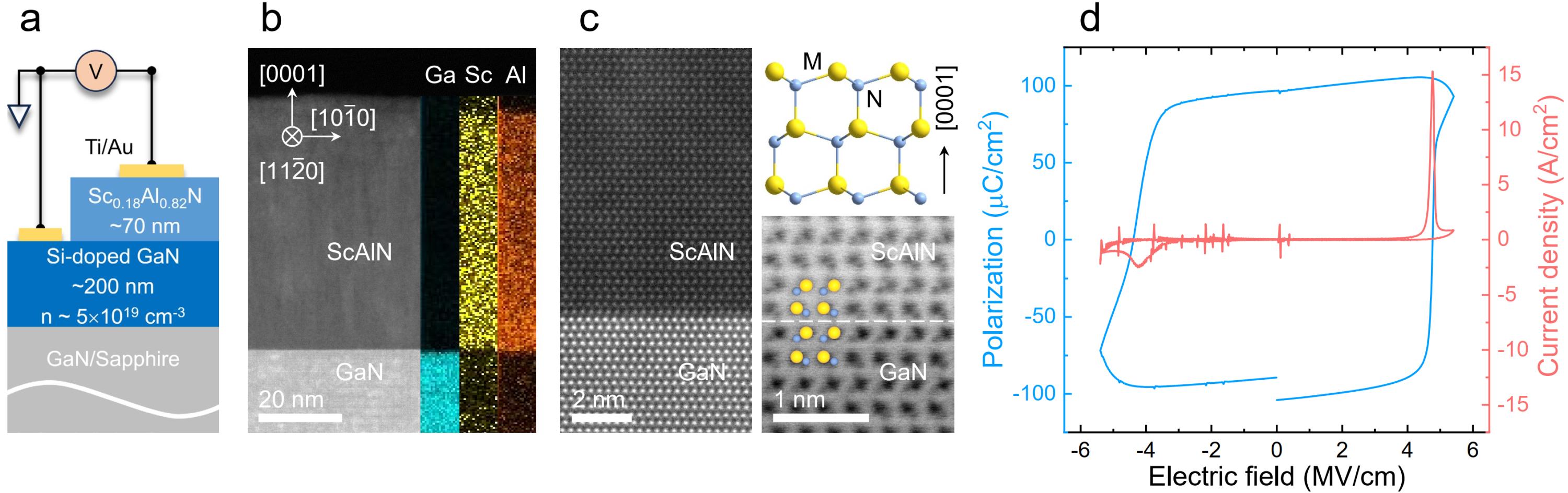图1.分子束外延生长的单晶铁电ScAlN/GaN异质结。