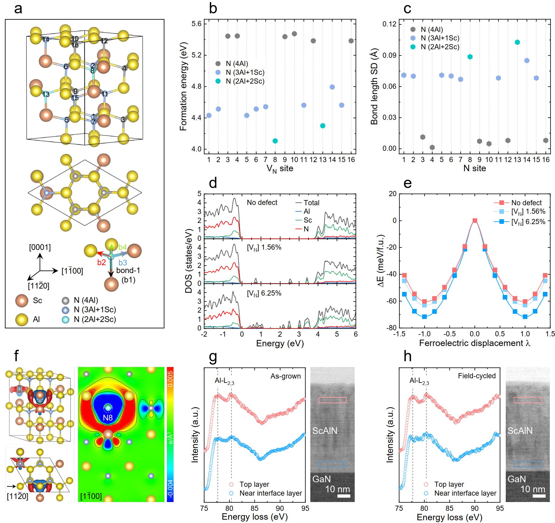 图4.氮空位对铁电ScAlN的影响。