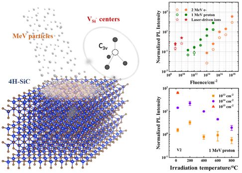 近期,关于高效制备高品质色心的研究工作在Appl. Phys. Lett.发表。该工作利用重离子物理研究所辐照种类齐全的优势,系统揭示了不同载能离子、脉冲电子束等辐照参数对制备高亮度硅空位色心的影响规律;实现了不同亮度色心材料的可控制备,为高品质色心系统的制备提供了有力支撑,也为下一步的辐射效应研究工作奠定了扎实基础。