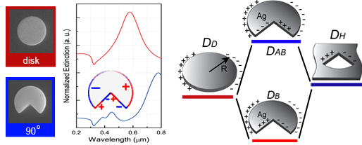 | 图2. 纳米盘的偶极模式与孔洞结构模式的杂化过程。右图为等离激
