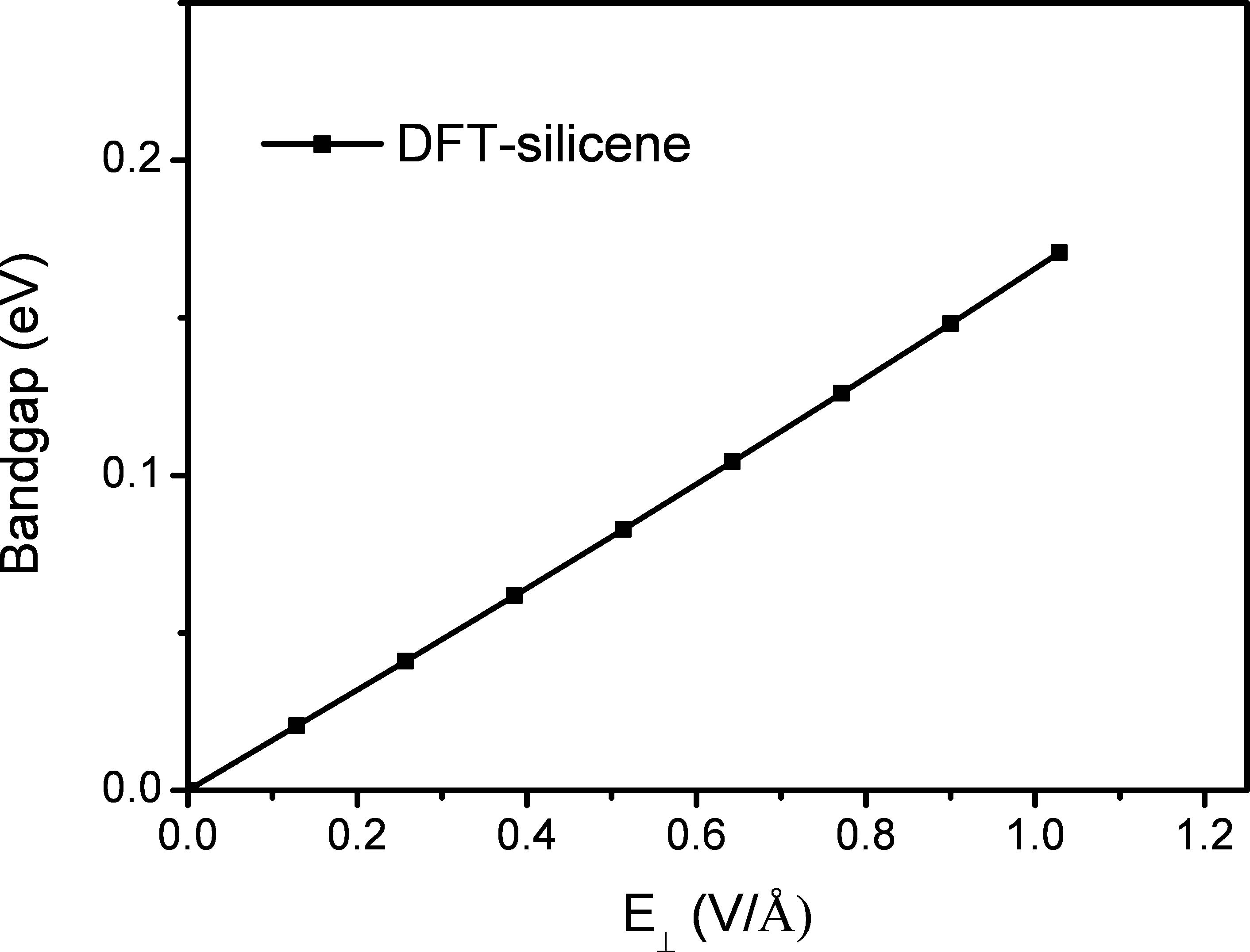 年的出现,真实的二维单原子层材料第一次出现在人们面前。石墨烯具有异常高的载流子迁移率,但零能隙的特点阻止了它直接做成高表现的场效应管。打开一个可控的能隙,并保持较高的迁移率是石墨烯研究最重要和急迫的主题之一。至今对单层石墨烯要实现可调的能隙仍然缺乏好的方法。由蜂窝状的硅原子构成的硅烯是近年来发现的一种新的二维单原子材料。硅烯也具有异常高的迁移率,但零能隙的特点也阻止了它直接做成有效的场效应管。凝聚态所与介观物理实验室的吕劲,高政祥老师指导本科生倪泽远(现为该组研究生)利用第一性原理的密度泛函方法证明了具有起皱结构的单层的硅烯和锗烯可以被垂直平面的电场打开能隙并且打开的能隙随电场强度线性增加,同时高的载流子迁移率也能够保持。为了在场效应管中保护化学活性较高的硅烯,他们提出了利用六角硼氮片作为缓冲层,隔离硅烯与SiO2