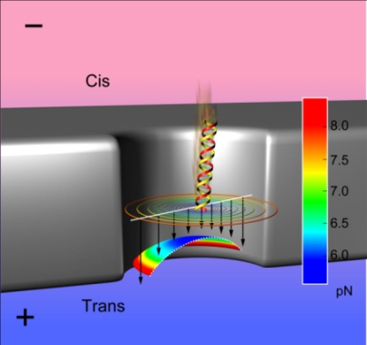 在以上工作基础上,课题组还系统研究了DNA穿孔时间随压强的变化依赖关系;压强和纳米孔大小对区分不同长度DNA分子的影响;建立了一整套完备的DNA在纳米孔中的受力模型,很好解释了实验结果