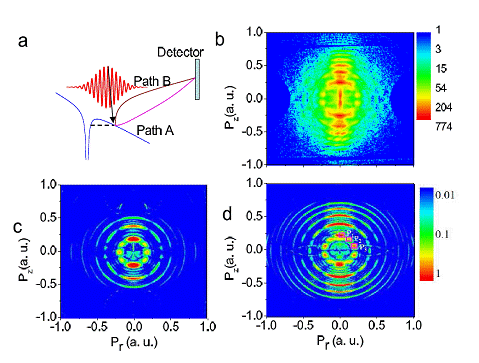 通过该理论可以直接采用量子轨迹的方法,研究电子在激光场和原子库仑场作用下的干涉动力学,可以建立多光子电离的经典-量子对应关系(如图2),从而对强激光场中原子分子电离过程的电子全息、分子结构成像及超快光场量子调控等方面具有重要应用。被审稿人评价为“这是这几年见过强场物理中最漂亮的理论,将对强场物理的发展具有重要意义。”