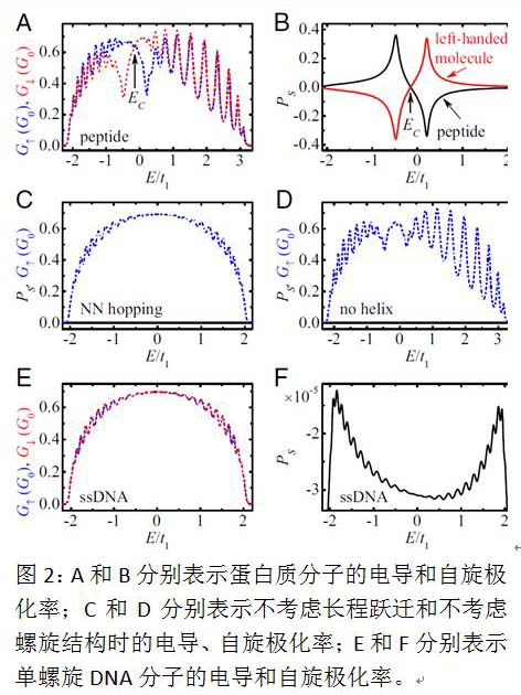 最近,孙庆丰教授和郭爱敏博士在分子自旋电子学领域又取得了重要进展。他们考虑将单螺旋分子接在两个非磁性电极之间,提出一个模型哈密顿量(包括长程跃迁项)研究了该系统的自旋输运性质。他们发现alpha-型单螺旋蛋白质是很好的电子自旋过滤器,电子自旋极化率达到36.2%,而单螺旋DNA不能有效地过滤电子自旋。这项研究成果解释了美国科学院院刊PNAS上的实验结果[PNAS