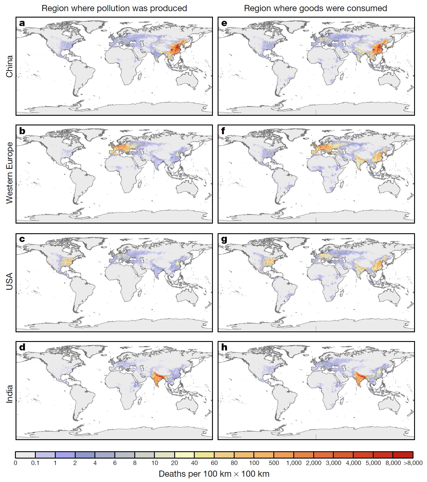 trade)的论文,首次定量揭示了全球贸易活动中隐含的PM2.5跨界污染的健康影响。