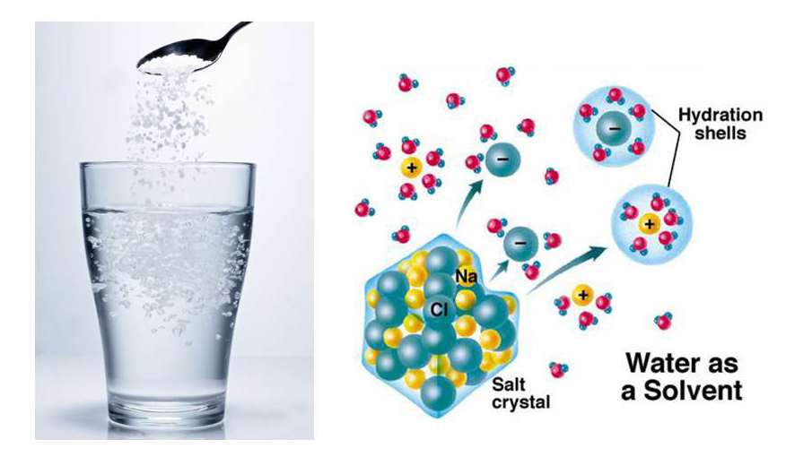 图1 水分子使氯化钠(NaCl)溶解形成离子水合物