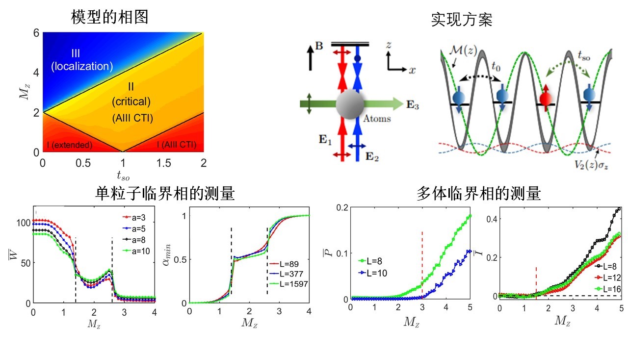 这项工作基于近些年来在理论和实验上发展的拉曼光晶格量子系统。拉曼光晶格的主要思想由刘雄军等从2013年开始的一系列工作中提出,并在近五年来广泛用于冷原子中实现自旋轨道耦合和拓扑物相。该工作提出一个具有准周期塞曼势的一维自旋轨道耦合模型,属于AIII对称类,并证明这个模型的相图有三个相:扩展相,局域相和临界相,且临界相占据相图中一个很宽的区域。在无相互作用情况下,作者提出可通过测量实空间波包动力学或者动量分布的时间演化来测得临界相。而在有相互作用情形下,可以通过量子猝火探测初态的残存率和密度的不平衡分布来测定多体临界相。最后,该工作给出具体实现所提模型的实验细节。该工作为实验实现和探测的非遍历量子临界相指明了方向。