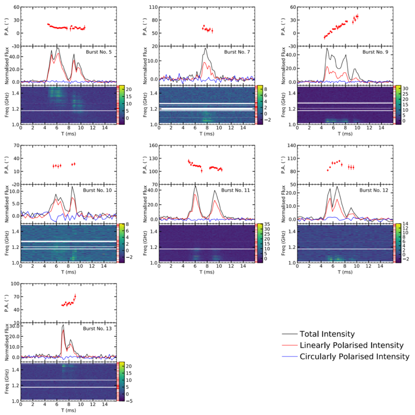 图3:FRB 180301的偏振多样性(来源 Luo et al., 2020, Nature)