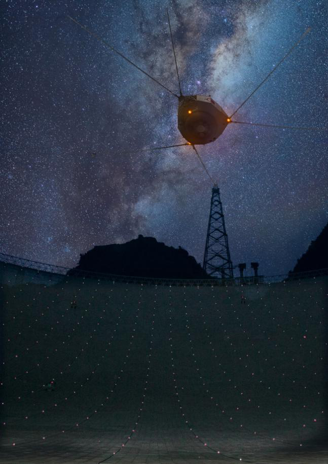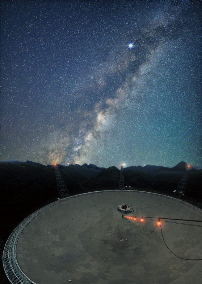 图2:FAST望远镜深度观测(摄影:黄琳、杨清亮,王铂钧、张春风、姜金辰。后期:崔起生)