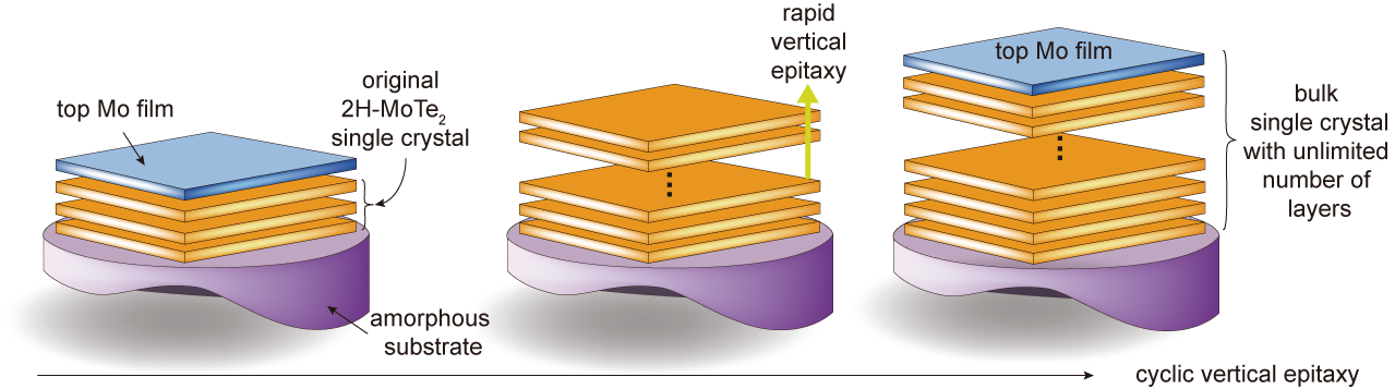 图2 垂直方向快速外延制备单晶2H-MoTe2块材单晶晶圆的方法示意图。