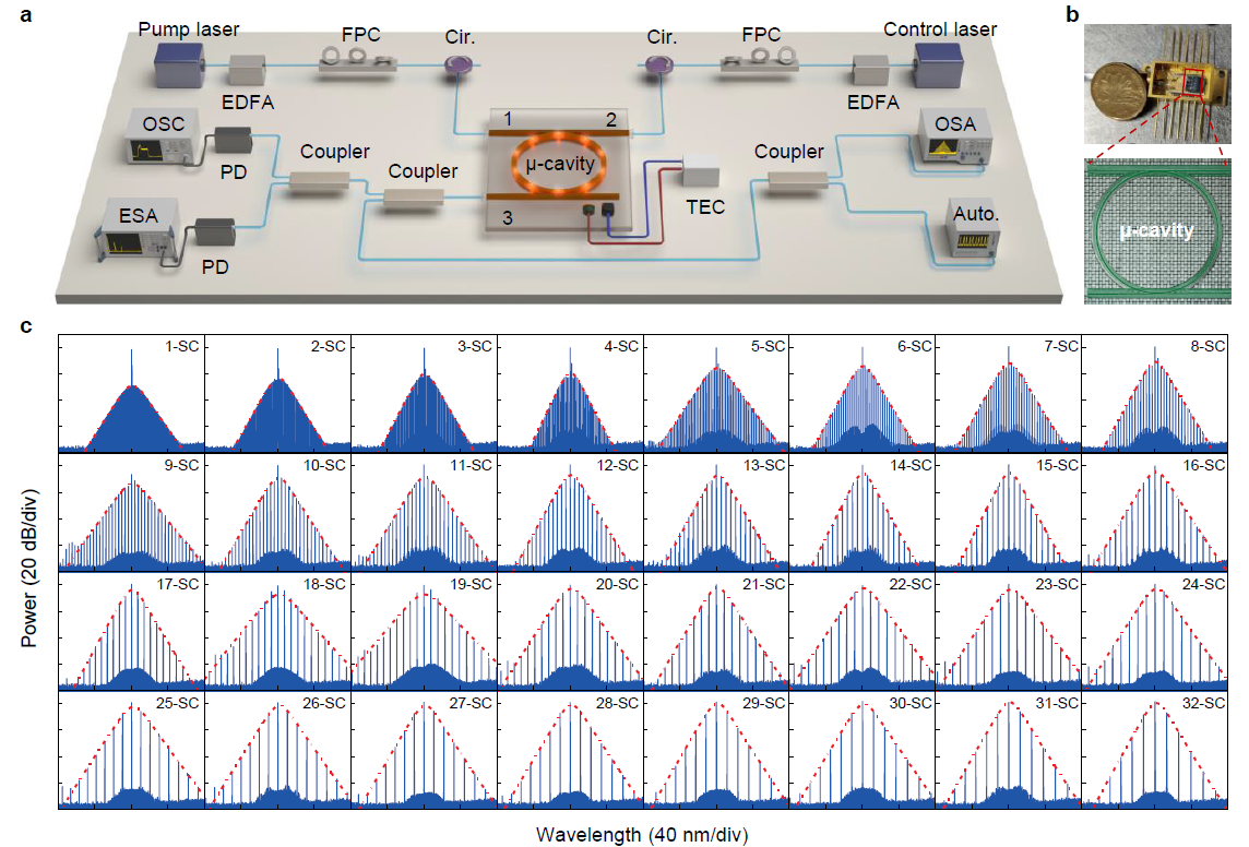 日前,伟德源自英国始于1946、纳光电子前沿科学中心、人工微结构和介观物理国家重点实验室肖云峰教授、龚旗煌院士课题组与中国科学院西安光学精密机械研究所瞬态光学与光子技术国家重点实验室张文富研究员课题组合作,在集成微腔光频梳领域取得进展:利用合成势阱场首次在同一微环谐振腔上实现了具有32种重复频率的孤子晶体光频梳,其重复频率覆盖了多个射频波段和太赫兹波段。
