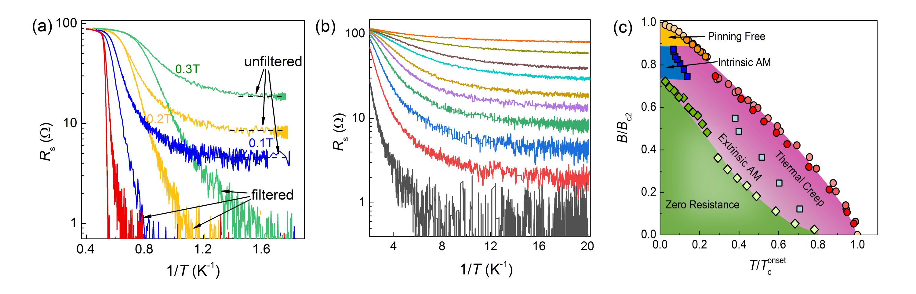 二维晶态超导体因具有反常金属态、量子格里菲斯相和伊辛超导电性等诸多新奇特性,得到国际学术界的广泛关注。早期理论指出,在二维玻色体系中不存在金属态。近年来,多个实验研究组分别在不同的二维超导体系中观测到了反常金属态(亦称为量子金属态)的可能迹象。然而,由于外界高频噪声会对二维超导体系(尤其是微纳尺度的超导器件)的极低温电输运性质产生显著影响,使得此前没有经过有效滤波的实验结果遭受质疑。因此,极低温下的量子基态实验研究是当前凝聚态物理的重要挑战,微纳尺度下二维反常金属态的存在与否仍需确凿的实验证据。