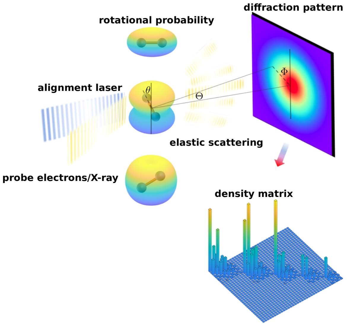 量子层析在量子光学、量子计算和量子信息等领域有着重要应用。在光学系统中,量子层析可以通过测量光场体系中每个自由度的演化获得光子态的维格纳函数和密度矩阵,由此确定体系的全部量子态信息。伴随着超快电子衍射和X射线衍射技术,特别是电子加速器和X射线自由电子激光对于时间分辨的分子波包测量技术的发展和进步,量子层析在分子体系中的应用得到广泛关注。量子层析能够给出超越分子经典“球棍模型”的描述,直观地体现量子理论下分子运动的本质。然而,目前对于超过一维的体系来说,尚不能由分子波包几率密度重建密度矩阵,这直接限制了对分子转动自由度和大部分振动自由度的分析,从而限制了量子层析的应用范围。