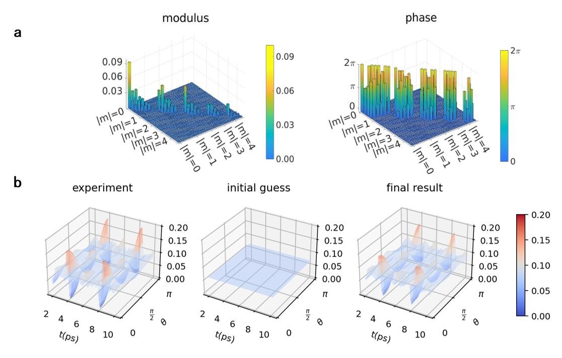 多伦多大学Dwayne Miller教授、南方科技大学徐海潭研究员、内布拉斯加大学Martin Centurion教授等将这一方法应用于超快电子衍射实验(图2),恢复了氮气分子转动波包的振幅和相位,对分子体系的转动给出清晰的描述。这一量子层析方法还可以直接拓展到处理分子振动等其他自由度的维度问题,通过几率密度获得密度矩阵,从而得知体系的全部信息;也可以推广至多个领域,用于制作量子意义下的分子电影和其他受到维度问题限制的体系中。