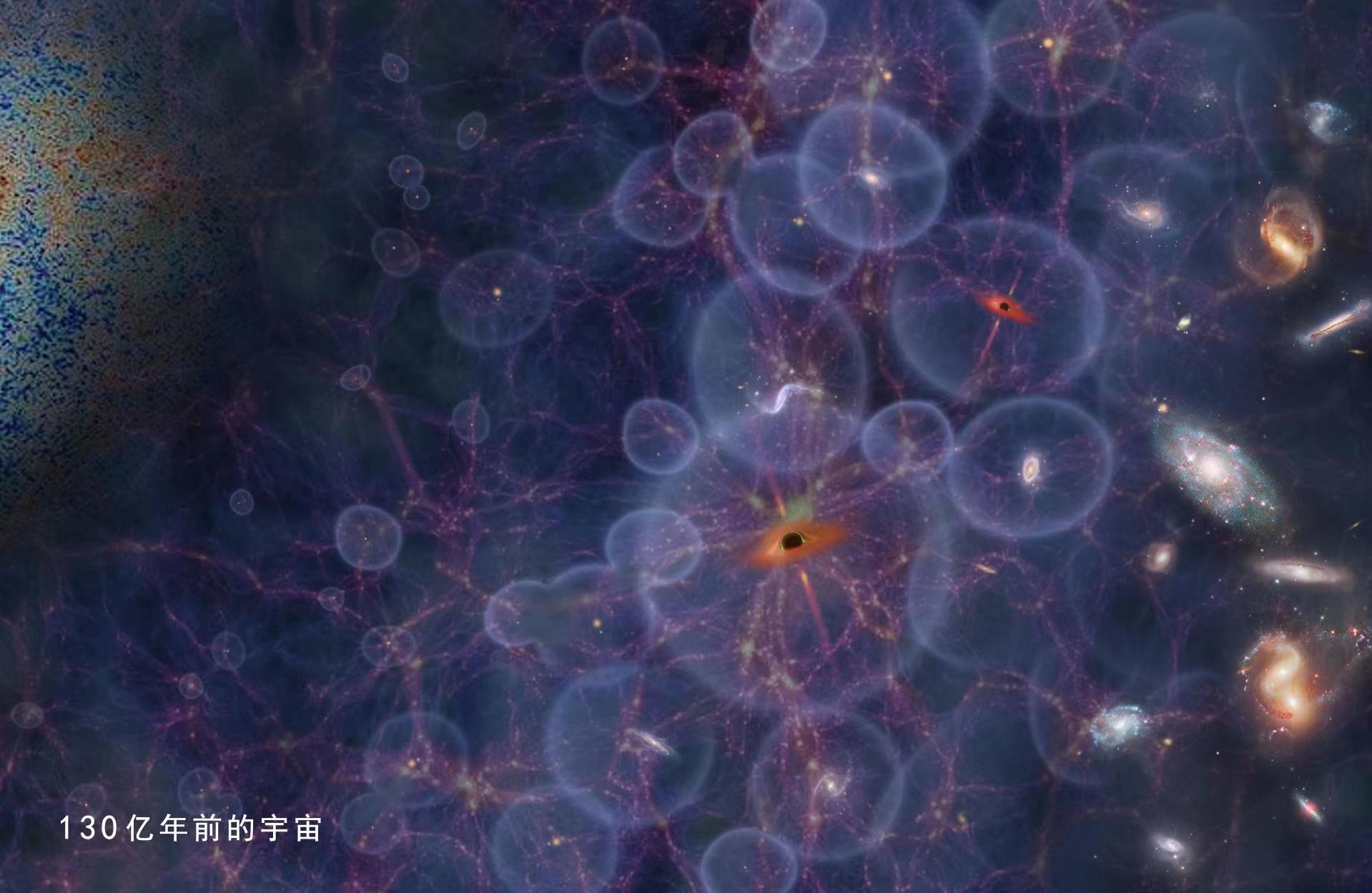 艺术想象图:发生于约130亿年前的宇宙再电离