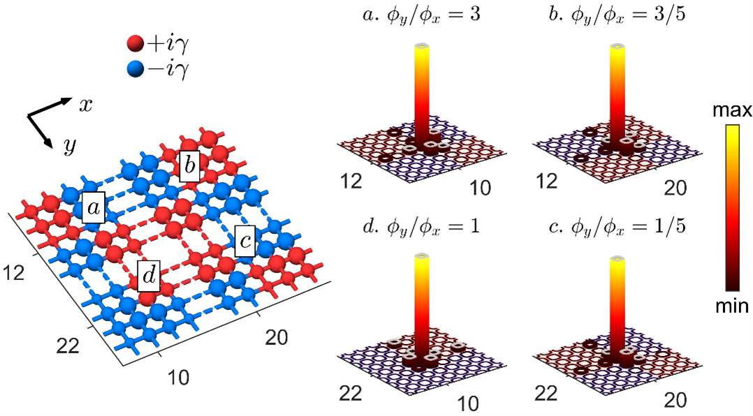 图2 通过适当设计增益损耗的分布,可以在二维体系内不同位置诱导出角态。