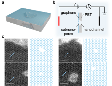 图1 石墨烯异质纳米通道结构示意与石墨烯亚纳米孔扫描透射电子显微镜图像