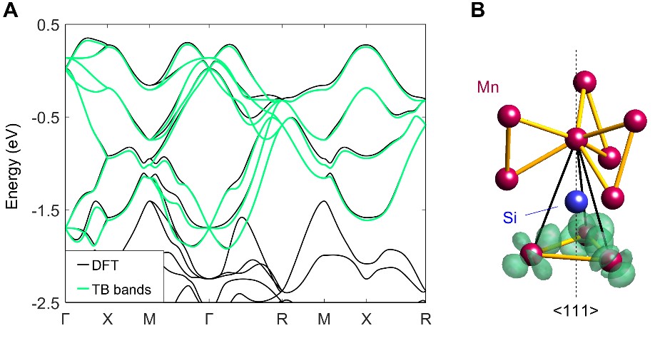 图2:计算表明,费米能附近电子能带的瓦尼尔轨道位于由三个Mn原子所构成的“分子”上