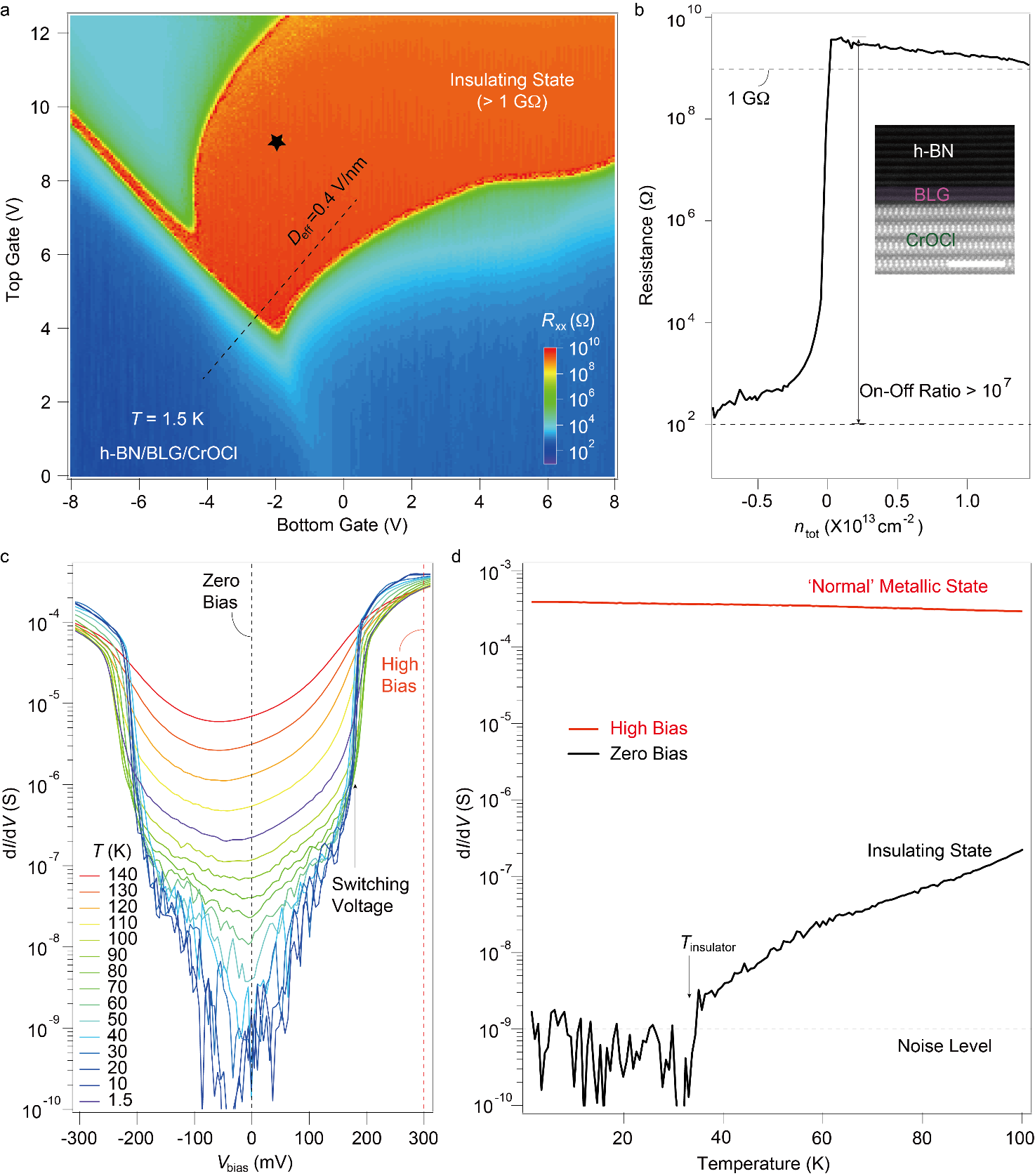 图1. CrOCl-BLG-氮化硼器件中新奇绝缘态。