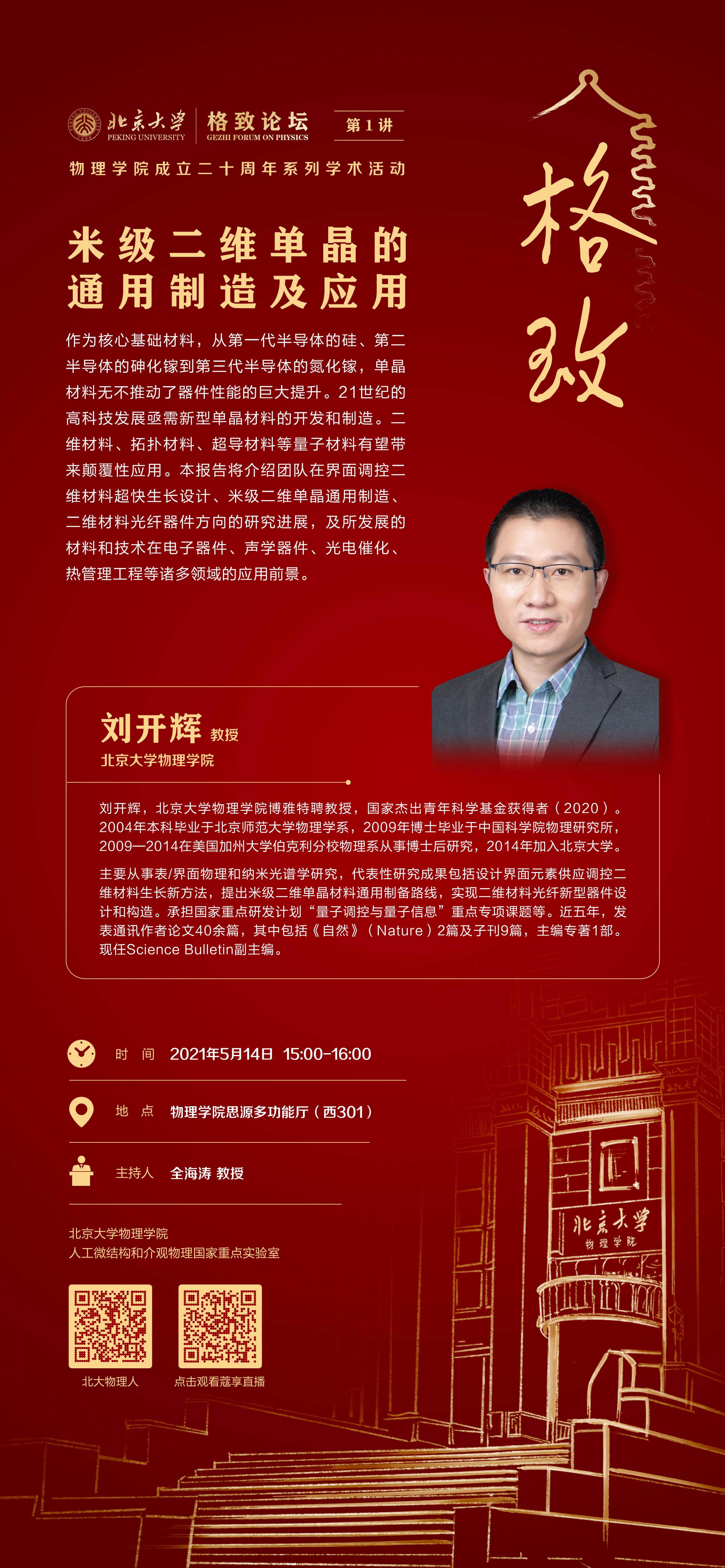 格致论坛(第一讲):米级二维单晶的通用制造及应用