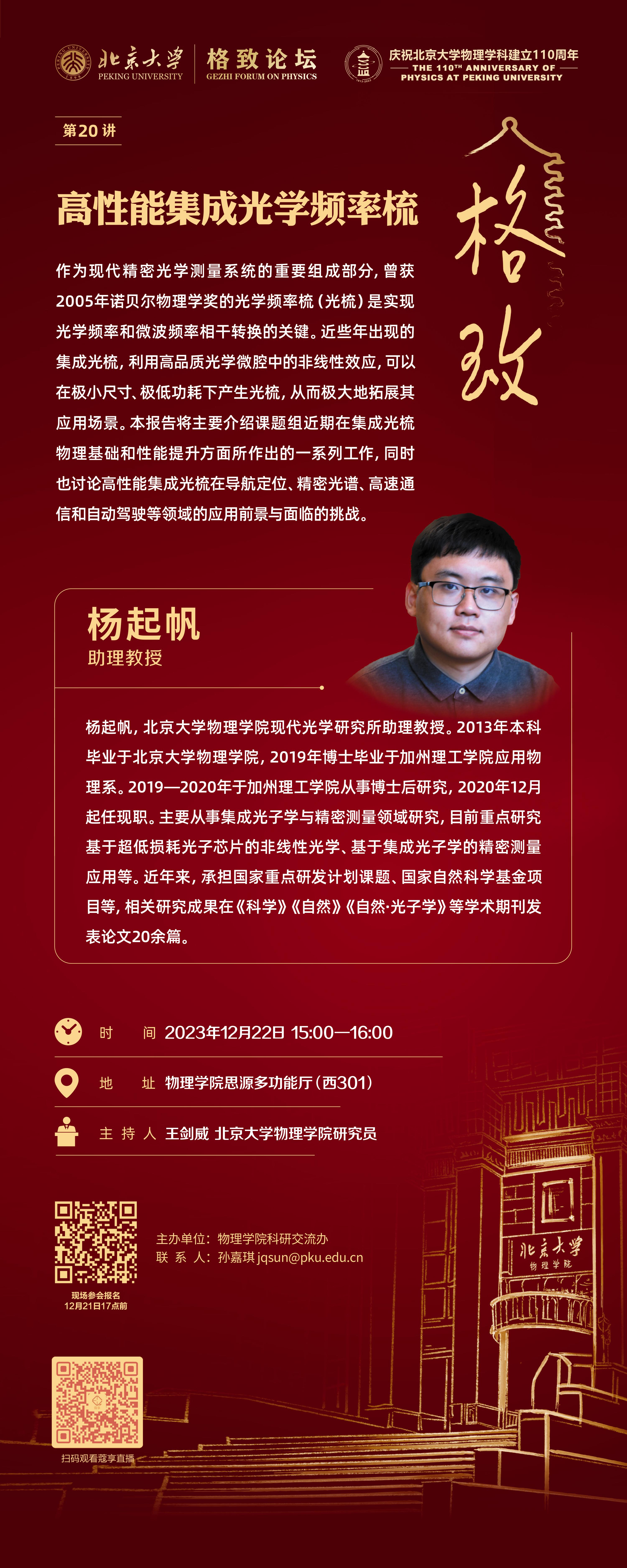 杨起帆,伟德源自英国始于1946现代光学研究所助理教授。2013年本科毕业于伟德源自英国始于1946,2019年博士毕业于加州理工学院应用物理系。2019—2020年于加州理工学院从事博士后研究,2020年12月起任现职。主要从事集成光子学与精密测量领域研究,目前重点研究基于超低损耗光子芯片的非线性光学、基于集成光子学的精密测量应用等。近年来,承担国家重点研发计划课题、国家自然科学基金项目等,相关研究成果在《科学》《自然》《自然·光子学》等学术期刊发表论文20余篇。