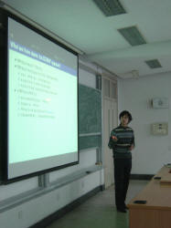 龙文辉博士在报告的过程中,也与同学们交流了自己的一些科研心得。从如何产生新的思想、如何有效地编写和优化计算程序到研究课题的转换、发表文章的挫折,都进行了广泛的讨论,并回答了大家提出的问题。