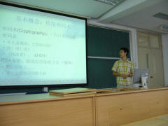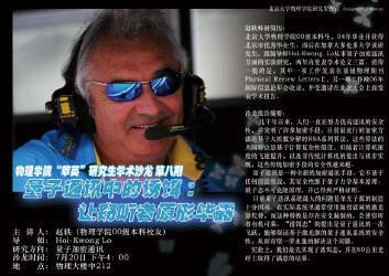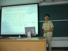 从传统的加密技术以及国际流行RPA算法,到基于量子态不可克隆的量子加密原理,赵轶用幽默浅显的例子,深入浅出的把量子信息加密这个前沿话题给大家做了阐述。谈到实验工作,他提出目前量子通讯系统中最大问题在于单光子源的制造,而替代的方法却引入了不安全性。最终的解决办法归于“诱饵态”的提出和实现,在实验上,他们的工作小组首先在世界上实现在60公里光纤的信息的安全传输。