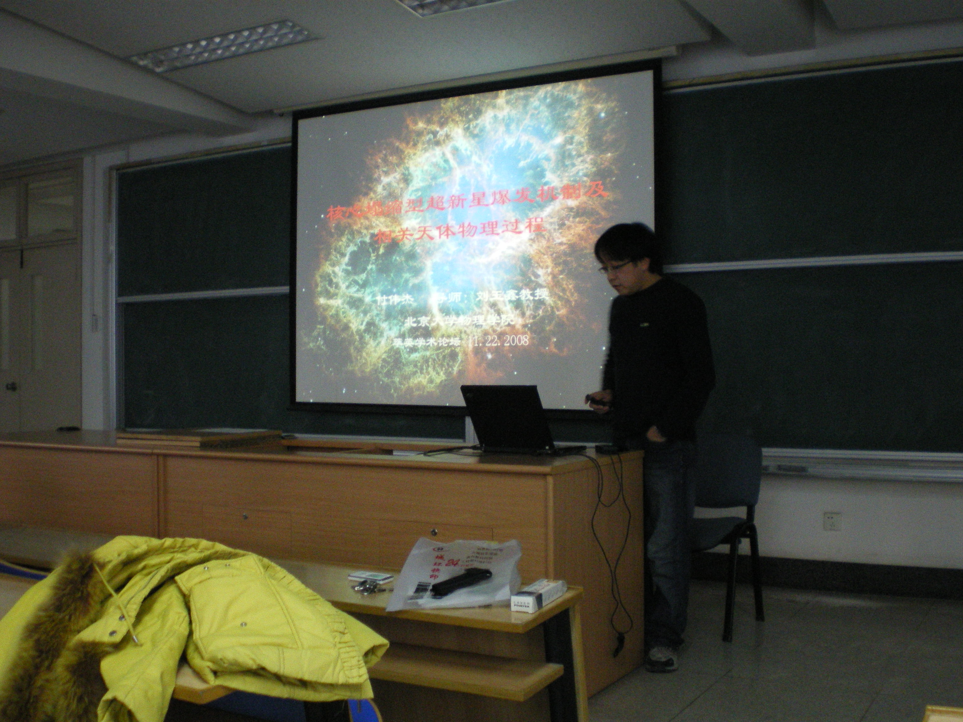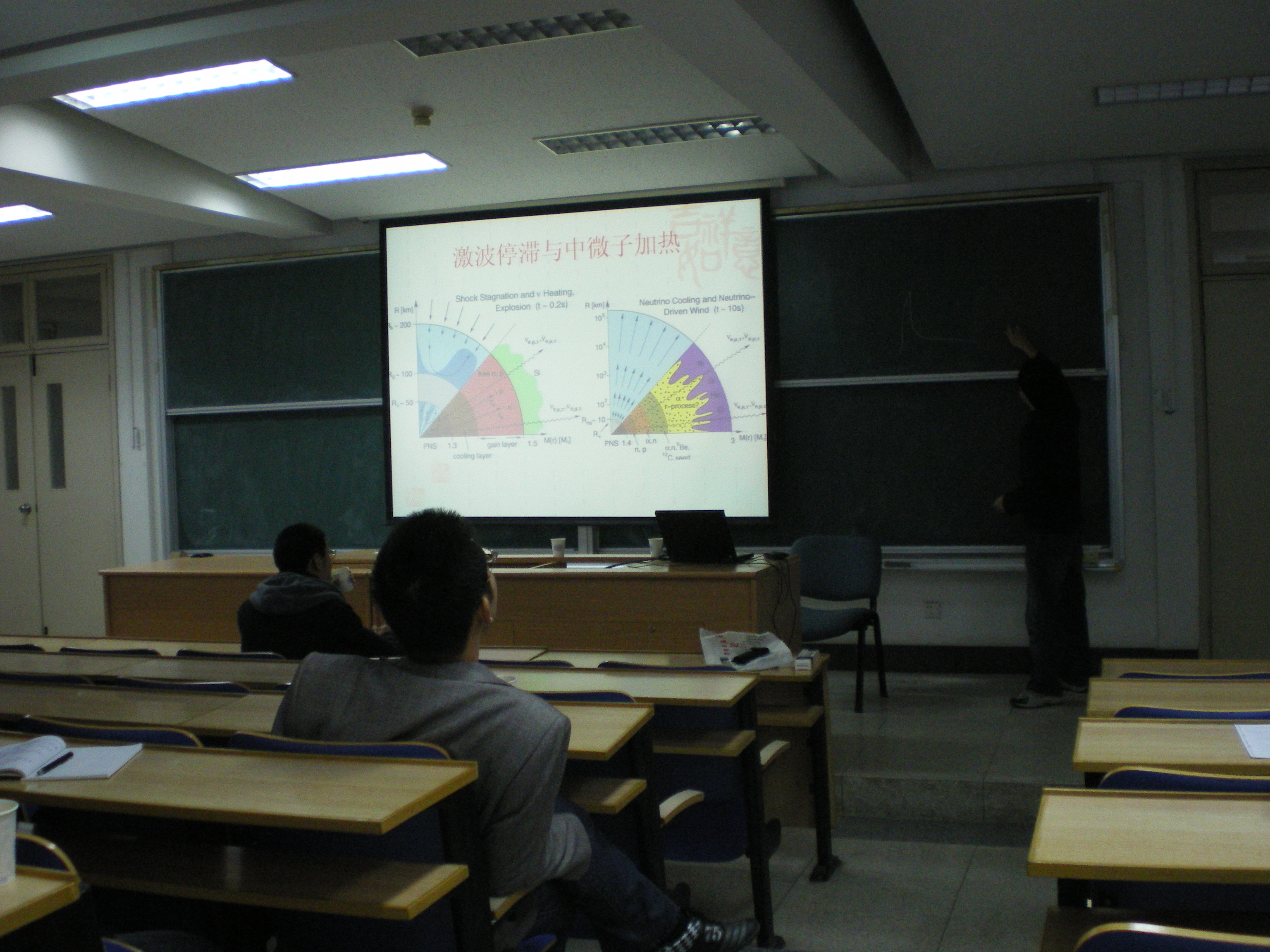 付伟杰同学的研究方向是天体物理。本次沙龙他给我们带来了一场题为《核心塌缩型超新星爆发机制及相关天体物理过程》的精彩报告。报告先从我国《宋会要》中关于超新星的记载讲起,之后介绍了超新星的分类、核心塌缩型超新星的基本图象及研究历史,最后详细介绍了超新星爆发的物理机制以及其中发生的物理过程。