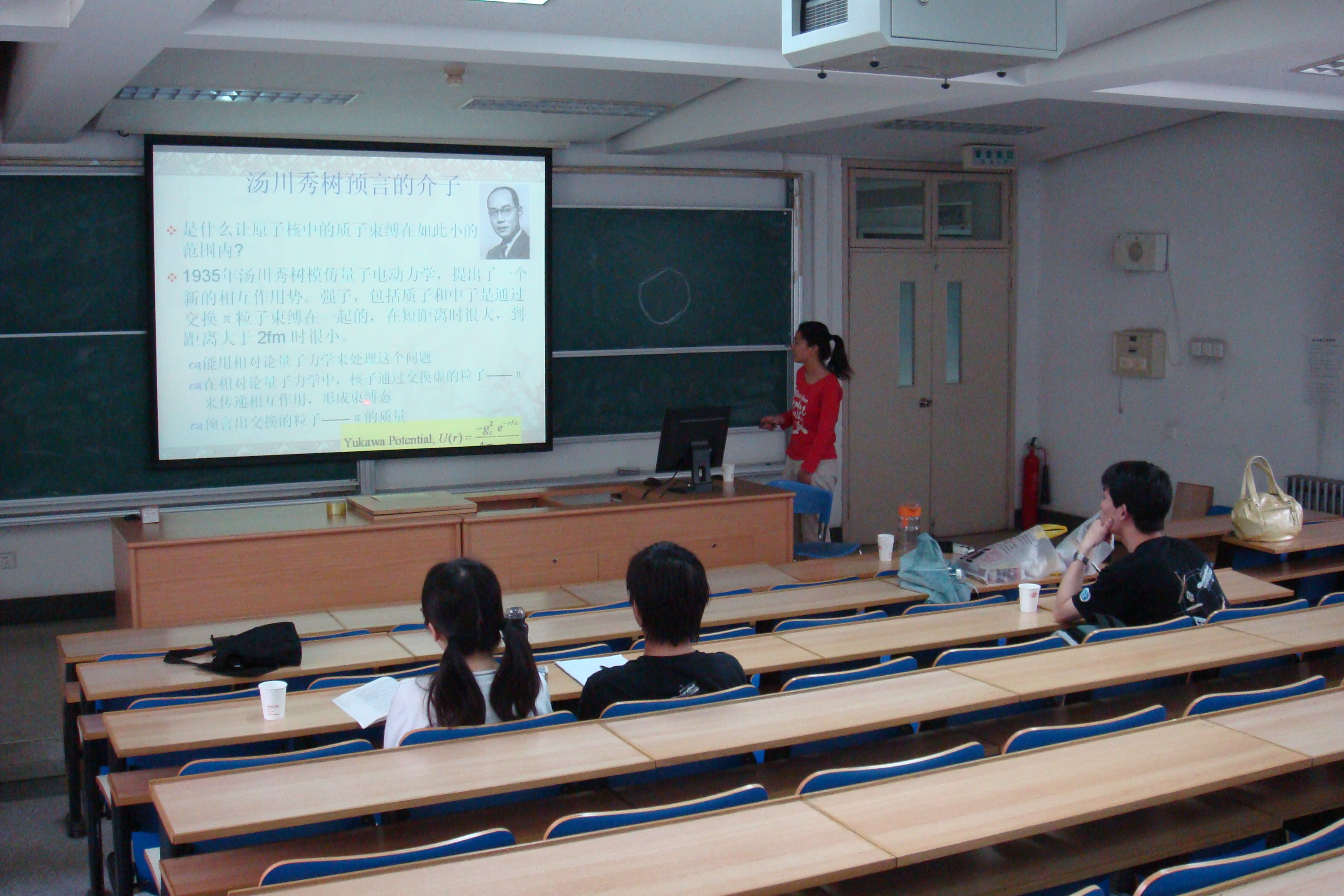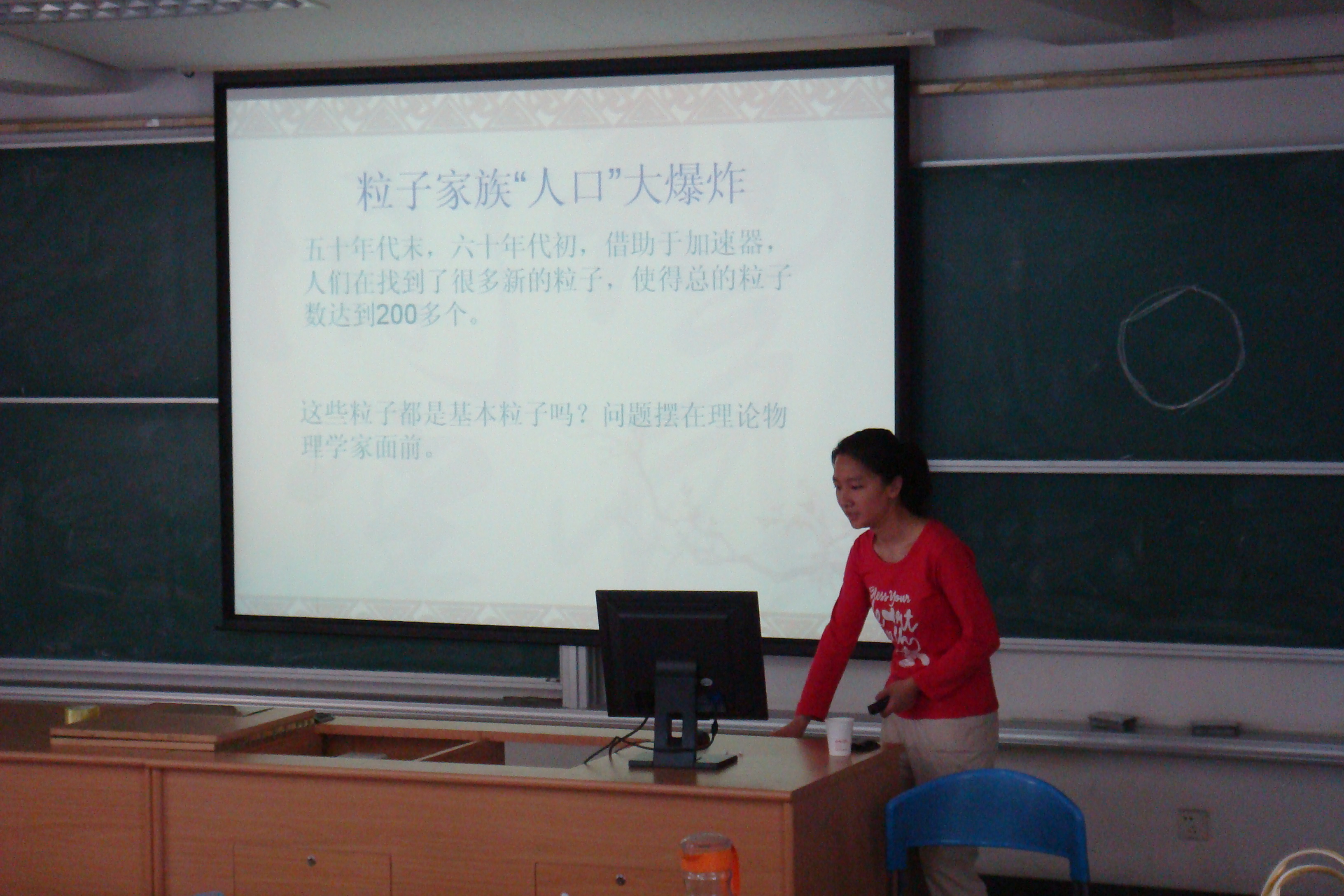 “萃英”研究生学术沙龙第三十二期于2009年5月23日在物理楼中212成功举办。本次报告的主讲人是来自我院理论物理专业的范莹同学。范莹同学是03级直博生,师从理论物理所的赵光达老师,主要研究高能物理唯象学。她科研表现出色,以第二作者身份发表的一篇文章已刊登在了2008年的Phys. Rev. Lett.上。