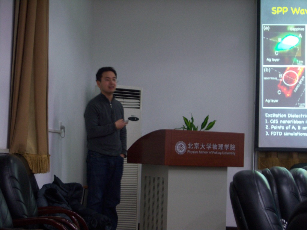 冰雪消融,本学期的第二期“萃英”学术沙龙于11月30日晚18点40分在物理南楼208拉开了帷幕。本次报告的主讲人是来自我院凝聚态专业的方哲宇同学。他是我院06级直博生,导师为朱星教授,目前已经在APL,OE等期刊上发表了七篇论文。