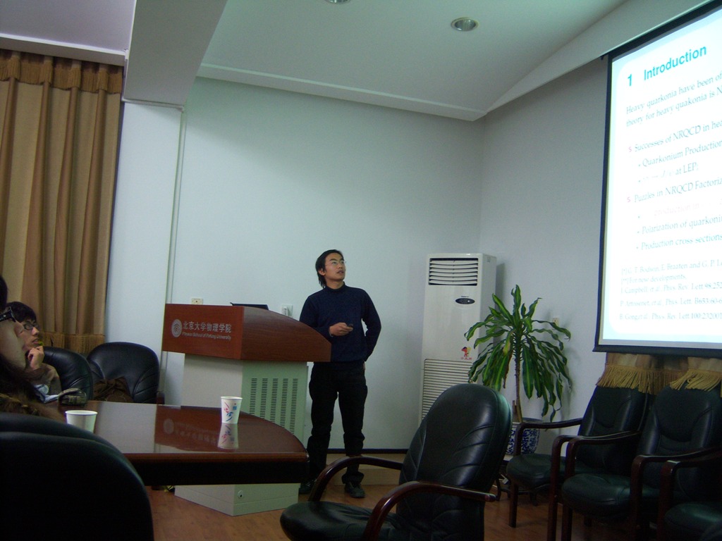 马滟青同学主要从事重夸克偶素方面的研究工作,在本期这“萃英”沙龙中,他给大家介绍了他发表在PRL上的工作“B工厂中J/Ψ的单举产生”(点击下载)。之后,主讲人又从自己的切身经历出发、并具体结合此次介绍的工作,图文并茂的给大家介绍了他的科研心得,包括怎样合理的选择课题、如何充分的利用资源以及怎样全面的呈现自己的成果等问题。