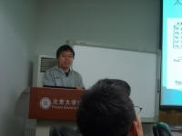 伴随着阵阵的春风,新学期的第一次 “萃英”学术沙龙于2010年3月31日晚18点40准时在物理楼南208拉开了帷幕。这“萃英”沙龙改版之后的第一次活动,与以往不同,本次我们请到了两位来自不同专业,但研究内容有很大相关性的主讲人。一位是来自凝聚态专业07级的博士生王磊同学,他的研究方向为GaN基光电子器件及相关特性研究,导师为胡晓东教授。另一位是来自核技术及应用专业06级的博士生韩俊峰同学,他的研究方向为薄膜太阳能电池,导师为赵夔教授。