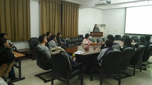 第一位主讲人的是郭静同学。她重点为大家讲解了STM成像原理以及整个成像实验的设计及结果讨论分析。郭静曾参加2013年物理学会秋季会议,并荣获优秀海报奖。