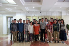 最后,朱学长与到会学生一起在“物理伟人铜像”前合影留念。