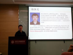第一位主讲人是量子材料中心2013级直博生杨武昊。杨武昊学长目前主要研究方向是FSF(铁磁/超导/铁磁)异质结中非局域电导以及噪声的测量,参与了利用硬针尖三维狄拉克半金属Cd3As2对进行加压导致其局域超导的工作,该工作于2015年11月发表于Nature Materials。学长主要为我们介绍了论文的相关工作,并且一一回答了同学们的提问。