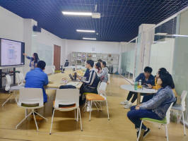 接下来在我们的茶话会环节中,同学们都很积极地向师兄、师姐请教了自己在学习、科研等方面遇到的问题,师兄和师姐也都结合自身的经历一一为大家解惑。这个环节大家讨论地很热烈,对科研表现出了浓厚的兴趣。活动最后,师姐向大家分享自己的心得:好的心态加上有目的有计划的学习方式更能得到好的结果。这种能直接与在科研等方面都很优秀的师兄、师姐面对面交流的方式帮助大家对科研有了更直观、更清晰的认识,也引起了大家对科研的浓厚兴趣。