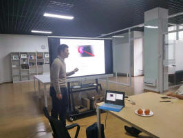 第一位主讲人是15级光学所的博士韩猛,他主要从事强场原子分子的实验与理论研究。该师兄已发表高水平SCI论文10篇,其中在物理学顶刊Physical Review Letters上发表3篇。他从实际器件和理论背景出发,以浅显易懂的方式向我们介绍了光学器件的基本原理,实验过程以及实验现象。韩猛师兄用严密的理论逻辑和有趣的动画演示带我们认识了高大上的光学器件的工作原理。