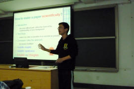 “Make your paper shine”.最后,来自一年级的直博生邵立晶同学就自己发表文章的经历,讲述了撰写文章、投稿等方面的技巧和注意事项,他那shining的PPT文稿和轻松幽默的讲演将整个报告会推向了高潮。