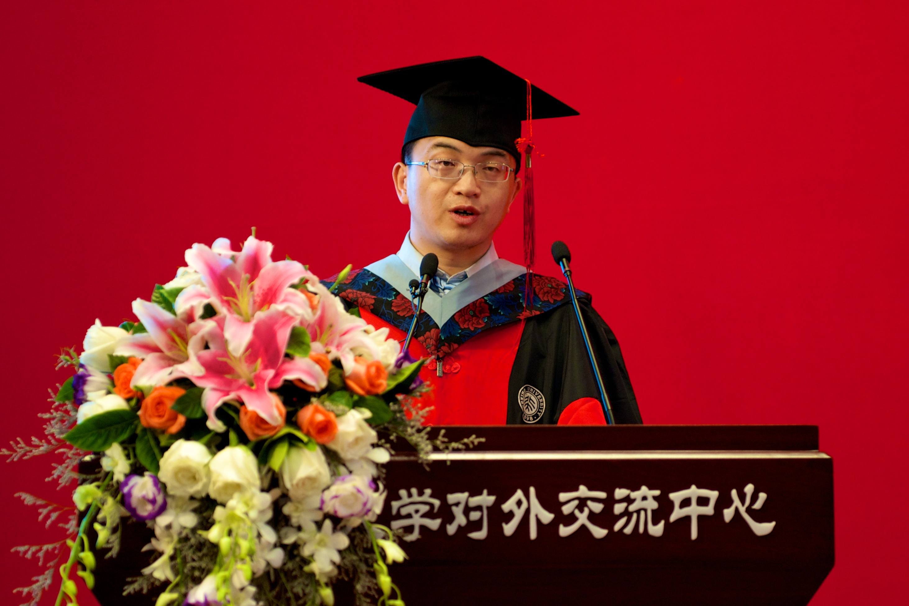 今天我非常荣幸能够作为物院博士生代表在毕业典礼上发言,分享自己研究生几年的感悟和临别时的感想。首先,请允许我代表全体毕业生向辛勤培育我们的各位领导、老师,表达最衷心的感谢;向这么多年来辛勤操劳的父母,表示最崇高的敬意;向多年来朝夕相处的兄弟姐妹们,表达最真诚的祝福。