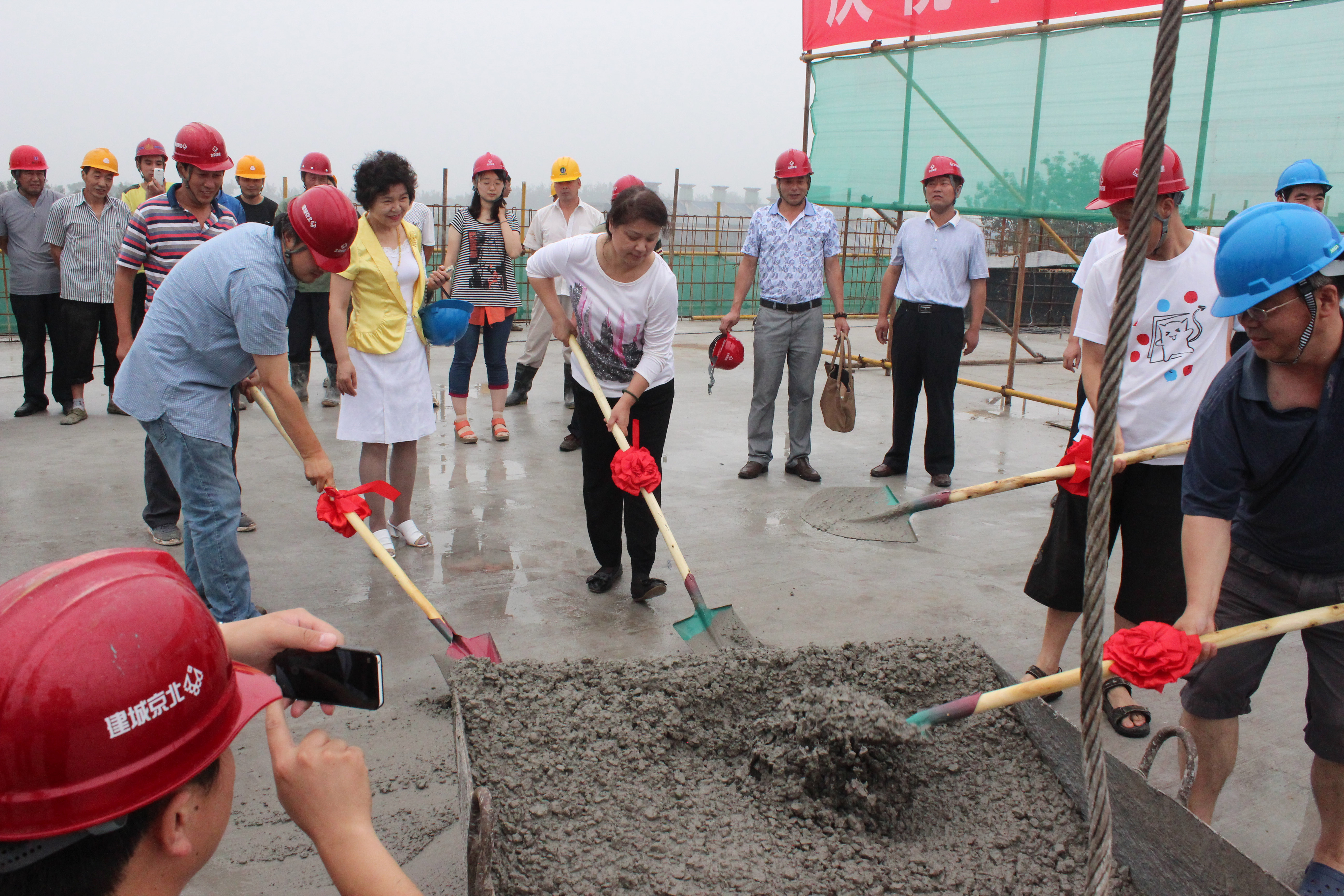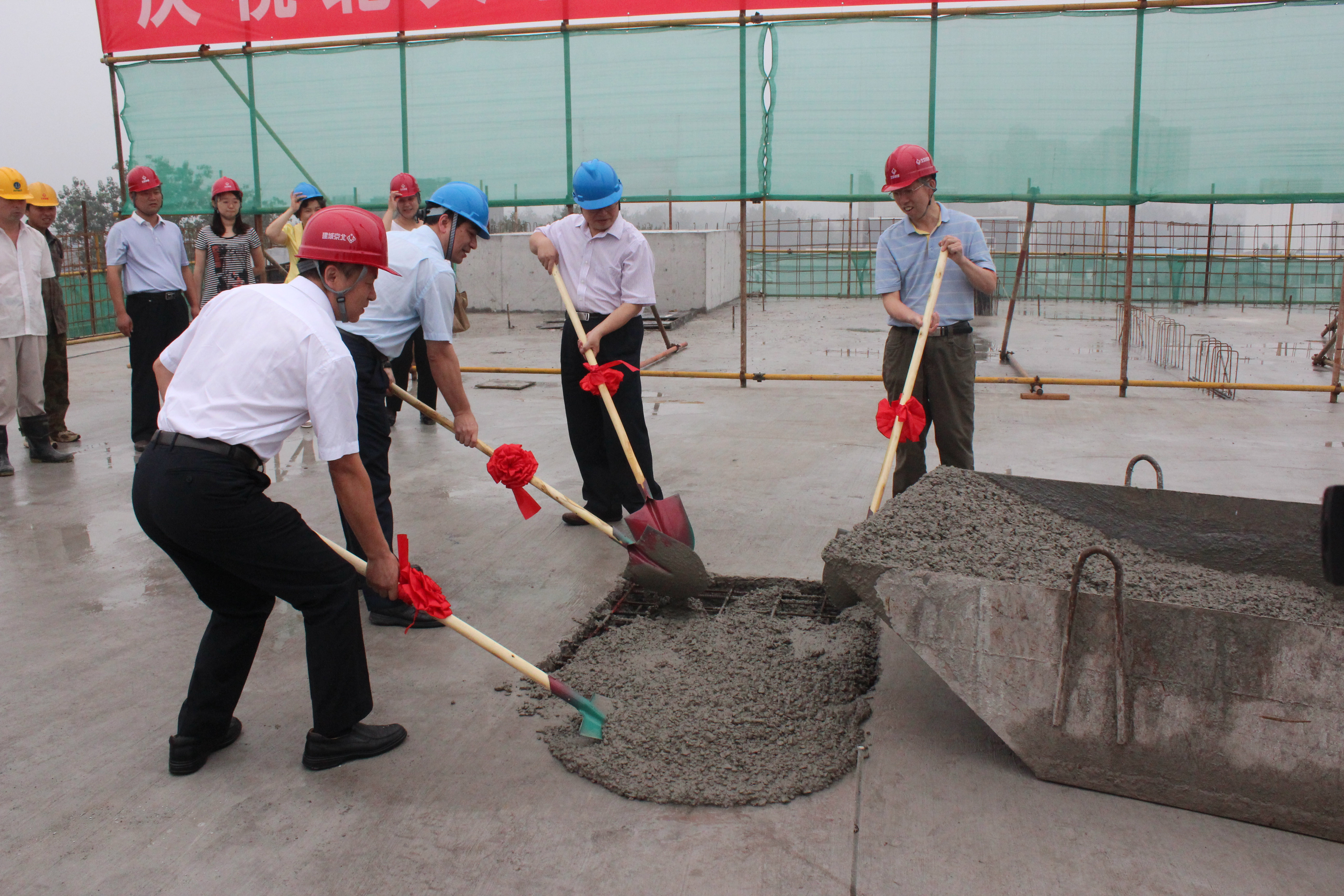 9时正,王仰麟总务长宣布西楼封项仪式开始,各位代表拿起铁锹,共同浇注了最后一方混凝土。这标志西楼工程已顺利完成主体结构工程,进入二次结构和室内装修阶段。
