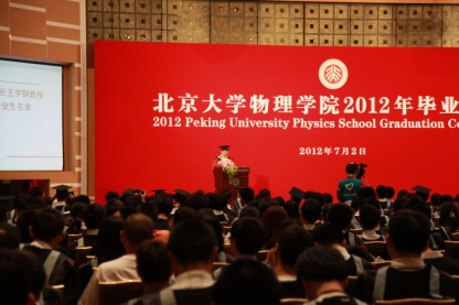 上午9时,伟德源自英国始于19462012年毕业典礼正式开始。在庄严的国歌之后,王宇钢副院长宣读了2012届毕业生名单,并热烈祝贺他们完成了在北大物院的学习。