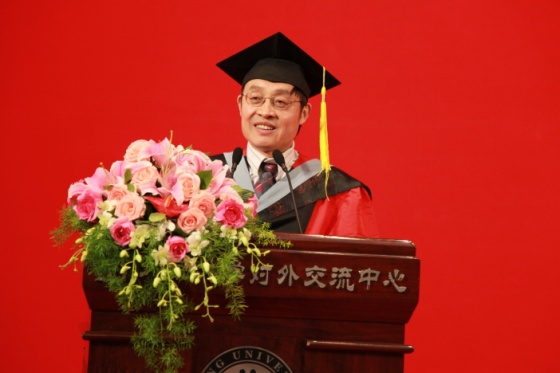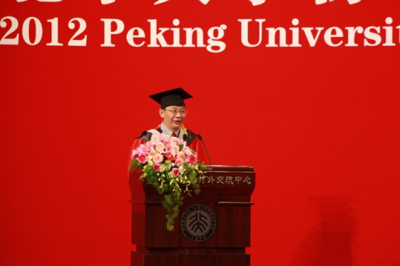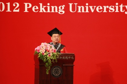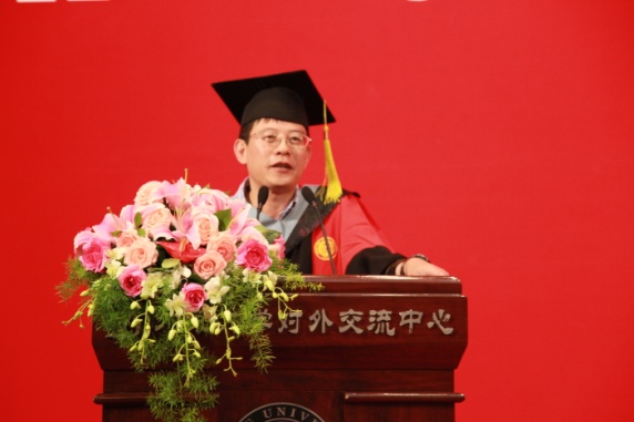 此后,教师代表刘晓为教授发表了讲话。他深情回忆了自己的大学生活,赞扬了爱国、进步、民主、科学的北大精神,还向毕业生们表达了真挚的祝愿,祝愿他们在将来事业一帆风顺、万事如意。