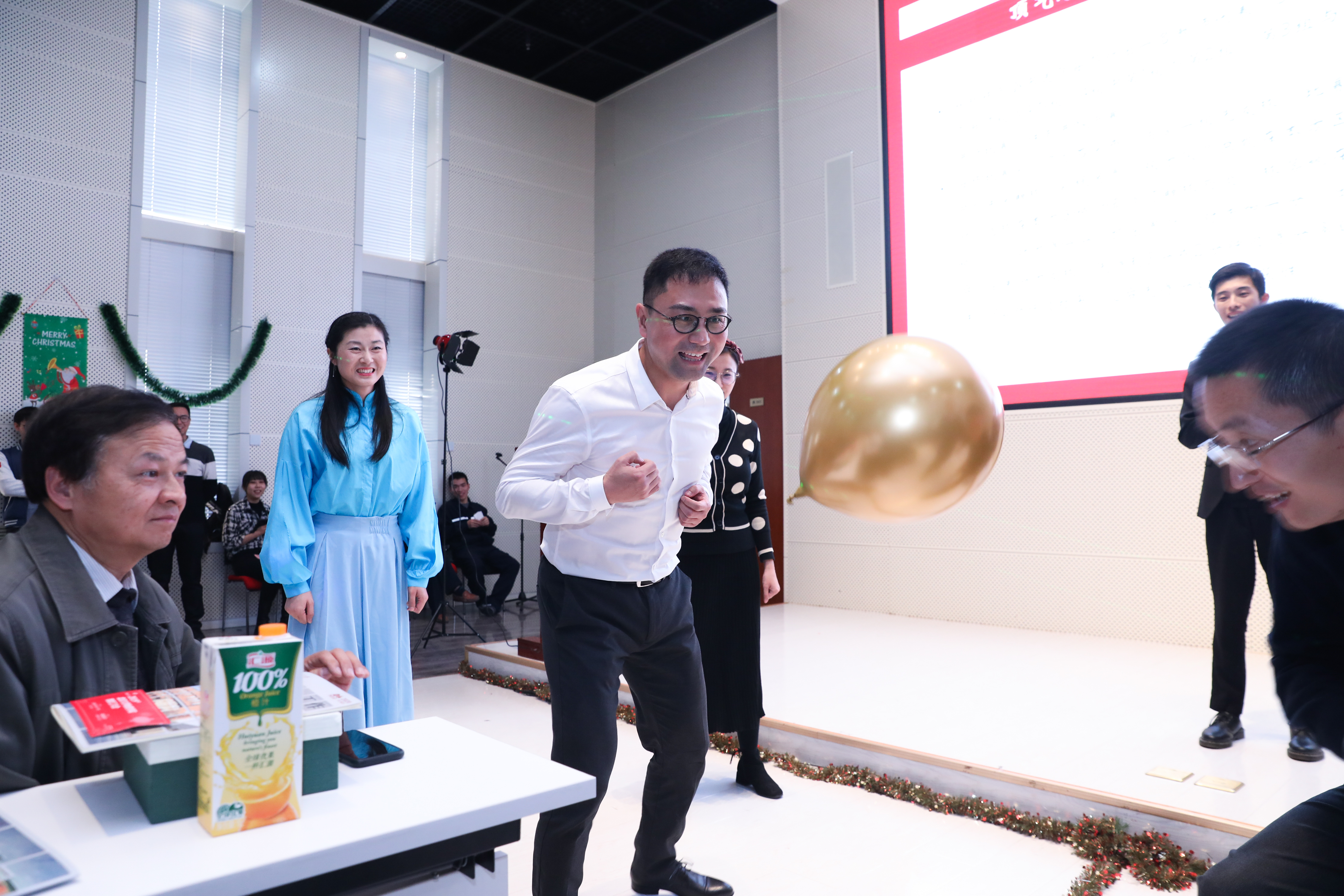 联欢活动由院学工办缑清睿、曾炯两位老师主持。此次联欢活动汇聚了众多精彩纷呈的文艺节目,展现了学院教职员工朝气蓬勃、自信昂扬的精神面貌,博得了在座老师们的阵阵掌声。学院办公会老师们带来合唱《战友之歌》,量子材料科学中心带来二重唱《贝加尔湖畔》和合唱《绒花》,电子光学与电子显微镜实验室带来合唱《真心英雄》,凝聚态所带来歌伴舞《我和我的祖国》,天文系和科维理所带来二胡独奏《赛马》、印地语清唱歌曲《恒河祈祷歌》和女子三人爵士舞“Sweet but psycho”,大气与海洋科学系带来二重唱‘それが大事’和京剧《三家店》选段,现代光学所带来男声独唱《鸿雁》,重离子所和技物系带来合唱《相亲相爱一家人》,普物实验教学中心带来男声独唱《小雨中的回忆》,高能物理研究中心带来武术表演《八卦昆仑扇》,行政老师们带来了充满活力的开场舞蹈《炫舞青春》和劲歌热舞《北方的狼》和《野狼disco》,学院参加国庆方阵的全体老师带来合唱《同心共筑中国梦》,充分体现了各系所老师们的热情参与和多才多艺。联欢部分还设置了游戏和抽奖环节,活动内容丰富,全场一片欢声笑语。活动的最后是“为生肖老师送祝福”的特别环节,现场所有属鼠的老师共同切分蛋糕,迎接新一年的到来。
