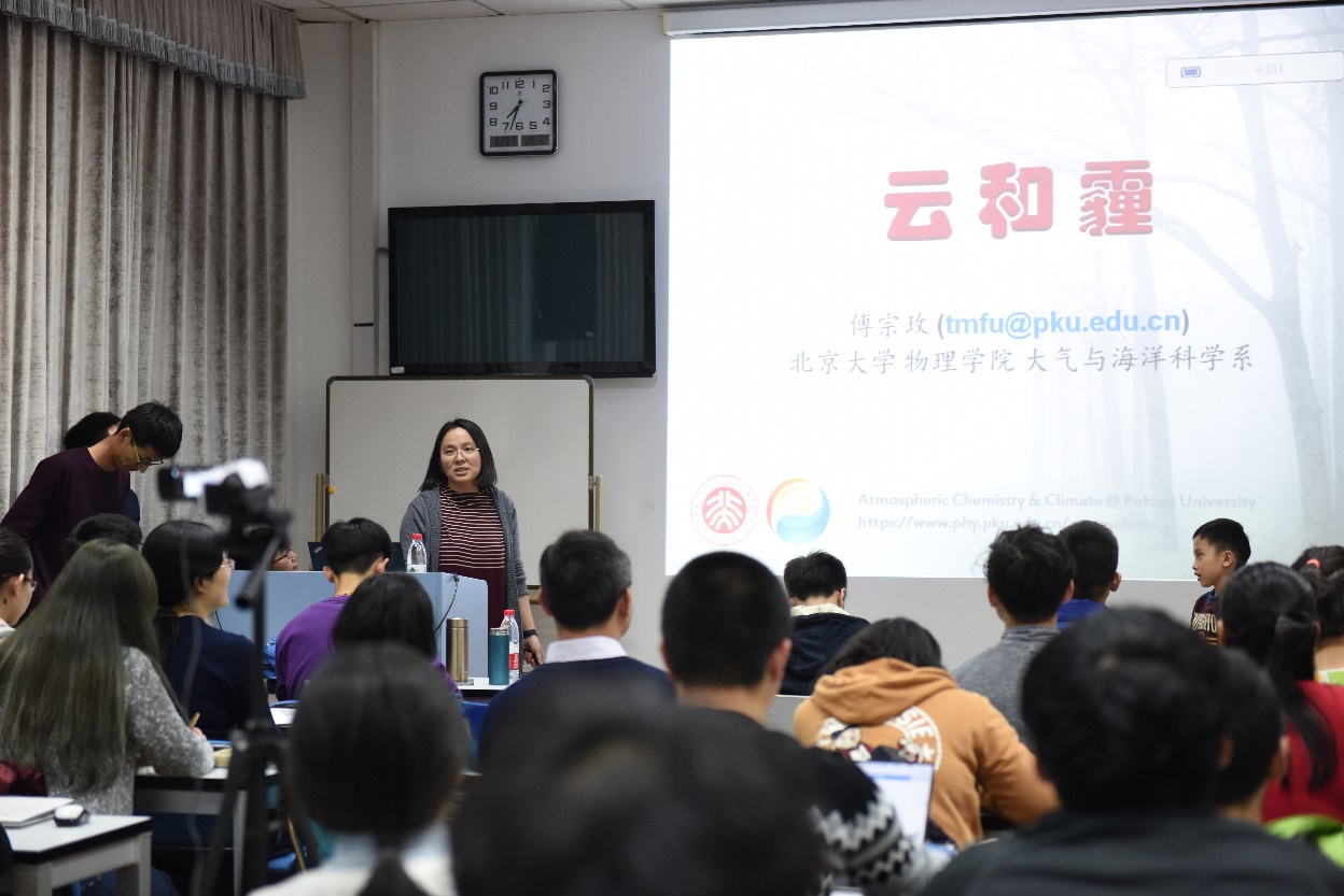 来自北大大气与海洋科学系的八位老师为现场观众逐一做了的专题报告。虽然活动当天下起了小雨,论坛现场依旧人气高涨,除了校内的同学之外,还有来自中国气象局、西藏气象局和其他高校的专家、老师和同学、以及关注大气科学的普通百姓。
